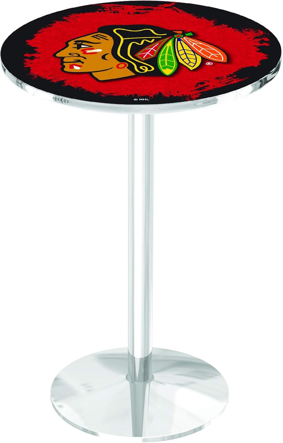 Amazon Com Holland Bar Stool Co L214 42 Chrome Chicago Blackhawks Pub Table With 36 Dia Top Sports Outdoors